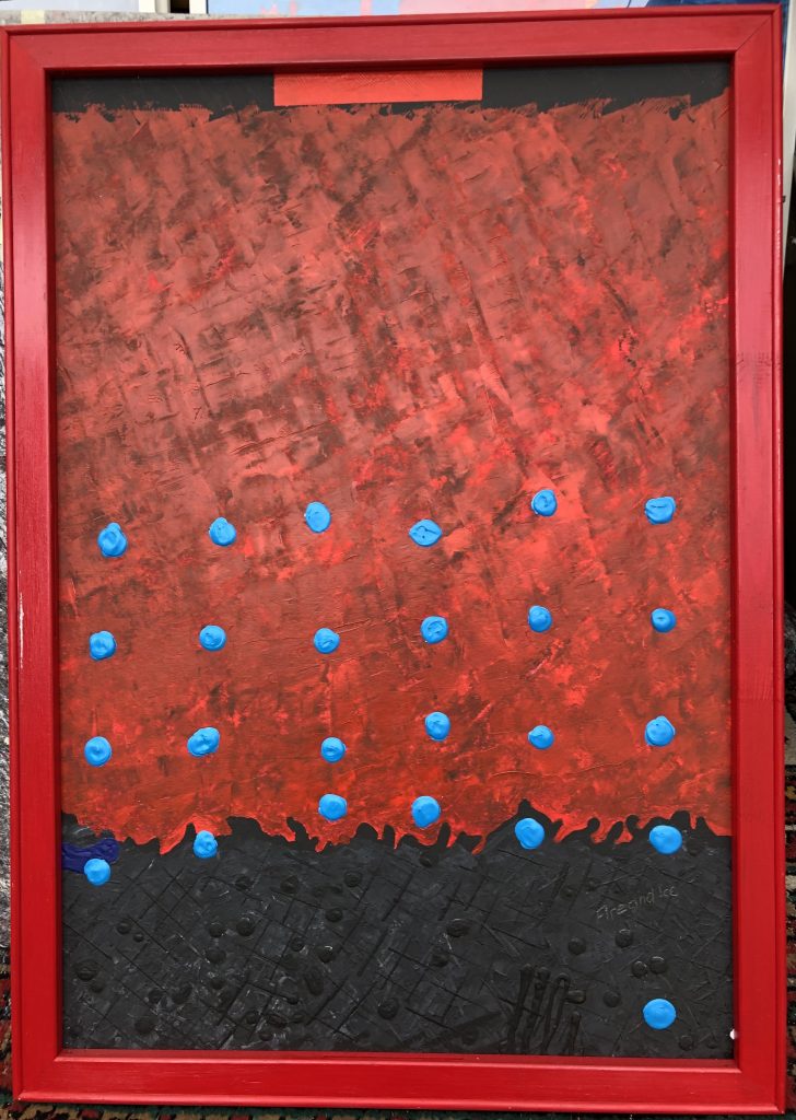 16 fire and ice dots .:. 16 fire and ice dots, Acryl auf Zeichenkarton im Holzrahmen rot 74×105 cm Galeriepreis 704 € Hochheimer Preis 352 € Ausschnitt fire and ice dots