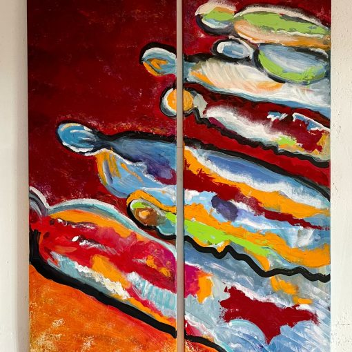 .:. Diptychon Holyday, Künstleracryl & -spachtel auf Leinwand, BxH ca. 2x 40×120 cm :.: Galeriepreis als Diptychon 1.040 €