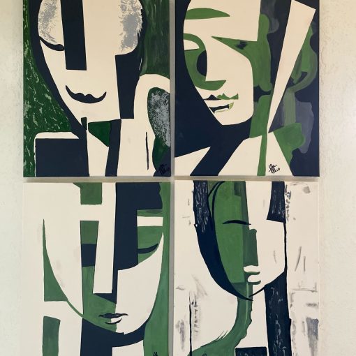 .:. Quattro 4-Faces, Künstleracryl und -spachtel auf Leinwand, ..: vier Bilder á BxH ca.: 30 x 40 cm :.: Privatbesitz