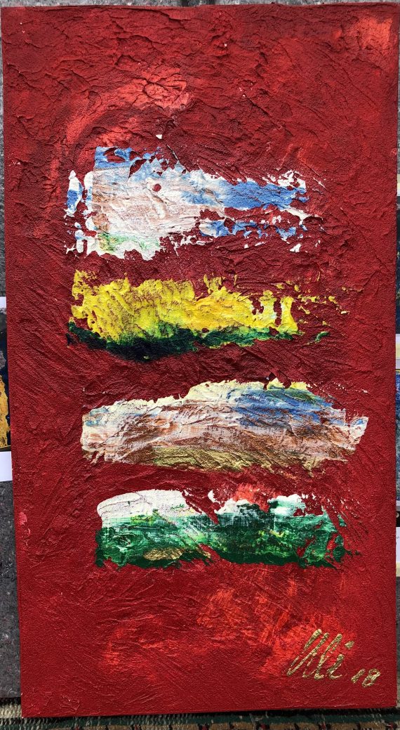 .:. 44 4 stripes on red, Struktur, Acryl auf honey comb 43×80 cm […]